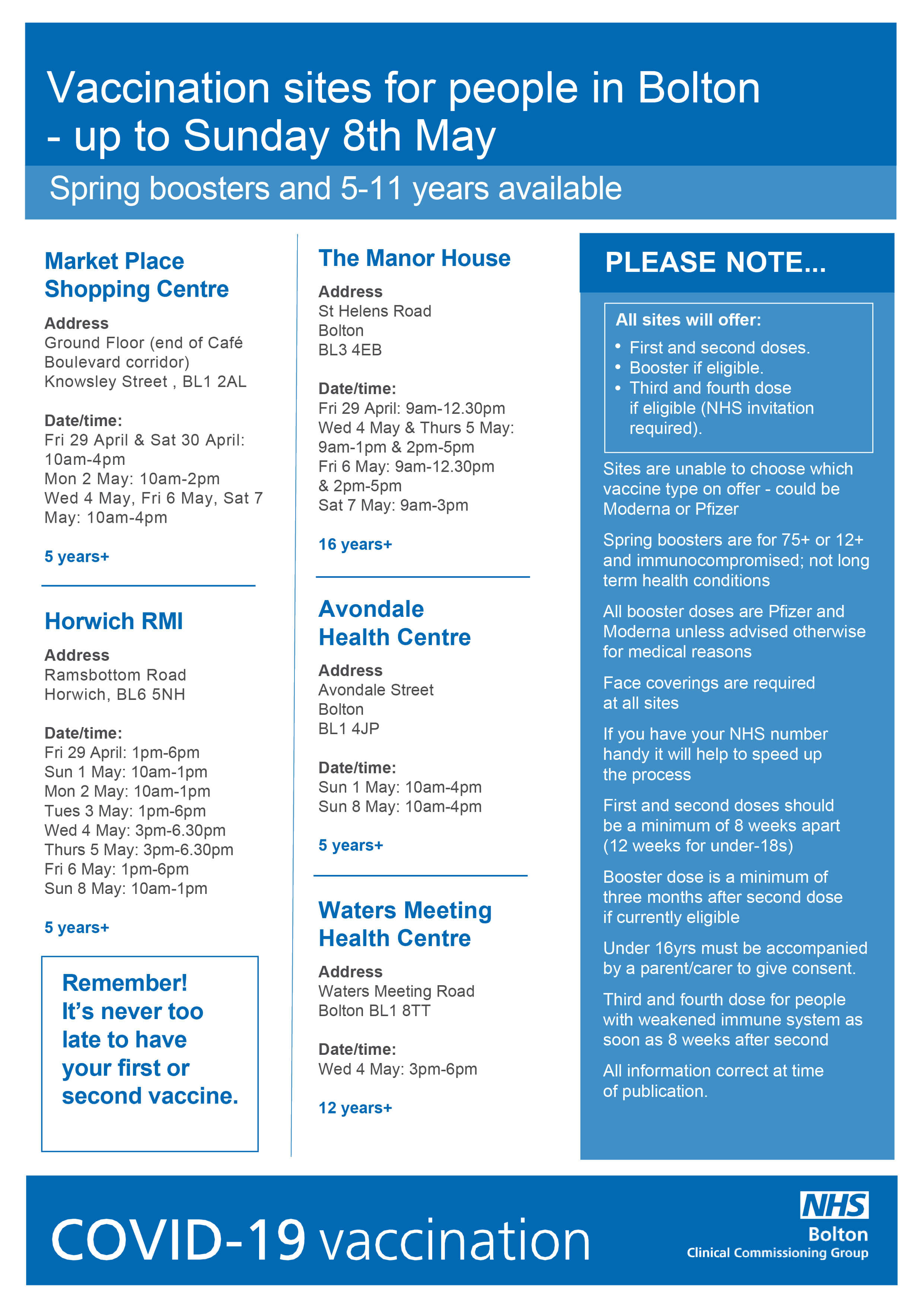 Bolton Covid 19 Vaccination Sites Up To Sunday 29th May 2022 Bolton Start Well